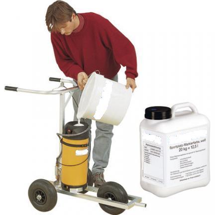 Hliníková konštrukcia, veľký tlakový zásobník(objem- 8 litrov), piestový tlakomer a poistný ventil, 3 kolieska s dušou, regulovateľný postrekový mechanizmus( 5 - 12 cm) s tryskou s plochým nástrekom. Lajnovanie na všetkých typoch ihrísk je možné aj keď prší. Farba garantuje trvanlivosť- vydrží najmenej 2 týždne, lebo trávnik je nasiaknutý farbou až ku koreňom.