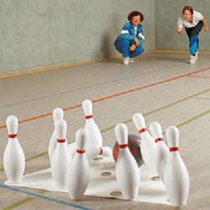 10 ľahkých nerozbitných bowlingových kužeľov(kolkov) na zrážanie( výška: 37,5, hmotnosť: 200 g), jedna gumená guľa( hmotnosť: 2250 g) a trojuholníkový podstavec pre rozostavenie kužeľov.