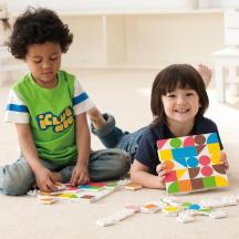 Plastová stavebnica Veselé puzzle je pre deti od dvoch rokov. Vďaka svojej veľkosti sú dieliky pre menšie deti ľahšie uchopiteľné. Deti sa pri hre s touto skladačkou učia vnímať detaily jednotlivých dielikov, ktoré potom zostavujú do harmonického celku. Úlohou je umiestniť farebné dieliky do bielej dosky tak, aby vznikol obrázok, číslo, písmeno alebo rôzne geometrické tvary. Biele dosky sa dajú jednoducho spojiť a vznikne tak väčšia plocha na skladanie puzzle.